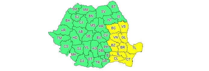 Atenționarea emisă de meteorologi este valabila de astăzi, de la ora 14:00, până mâine la ora 11:00.