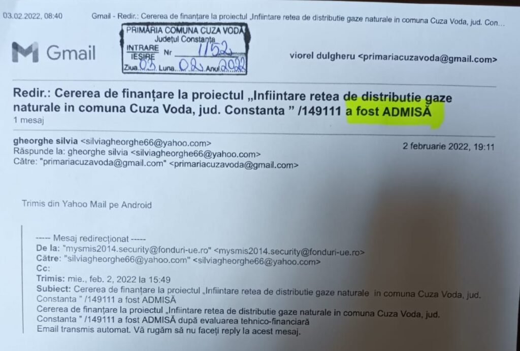 Primăria Cuza Vodă informează că a fost ADMISĂ cererea de finanțare FINALĂ la proiectul “Înființare rețea de distribuție gaze naturale în comuna Cuza Vodă” după evaluarea tehnică financiară. De la nivelul județului Constanța, doar comuna Cuza Vodă și orașul Murfatlar au fost selectate pentru proiectul de înființare a rețelei de gaze.