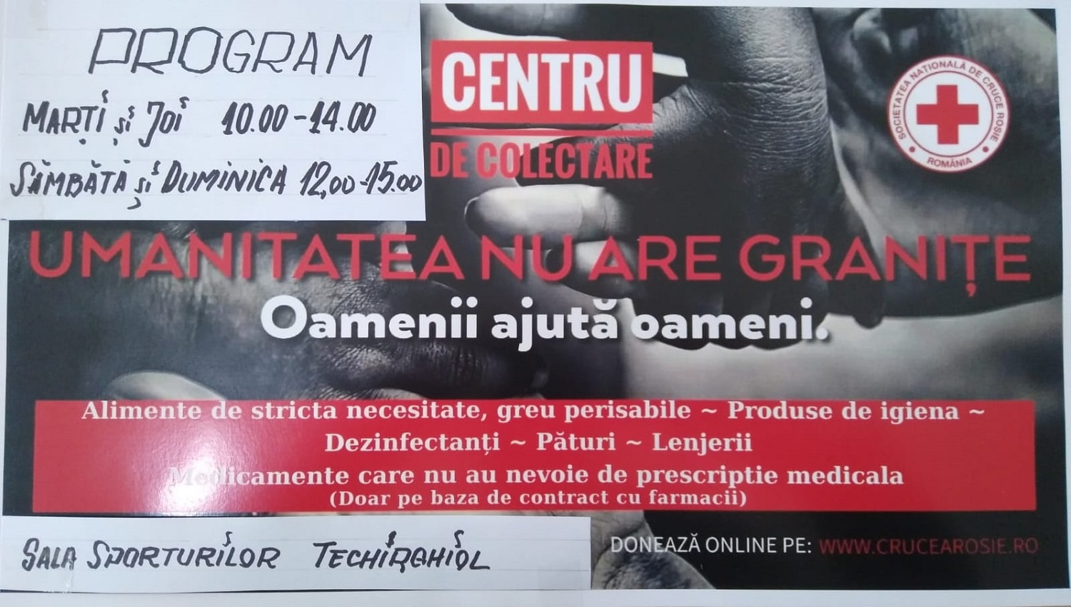 CENTRUL DE COLECTARE AJUTOARE SE AFLA LA SALA SPORTURILOR TECHIRGHIOL SI VA FUNCȚIONA DUPA URMĂTORUL PROGRAM: