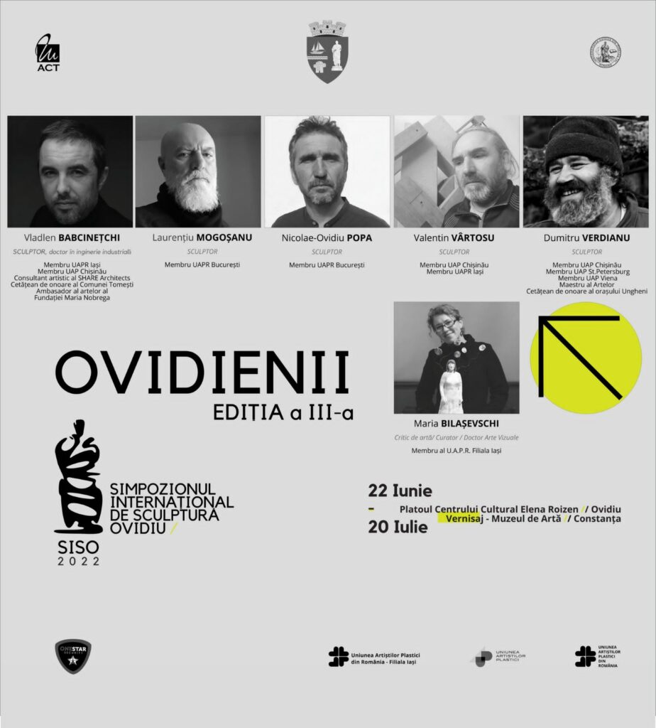 ✅🔨20 iunie – 24 iulie: Simpozionul ,,OVIDIENII’’, ediția a IV-a : Tabără de sculptură în piatră pe temă Ovidiană, eveniment organizat în parteneriat cu Muzeul de Artă Constanța și Universitatea ,,Ovidius ’’. Organizăm primul vernisaj live din România. Astfel, timp de o lună, vizitatorii Muzeului de Artă Constanța vor putea viziona live, pe 5 ecrane amplasate în muzeu, performanța celor 5 artiști (Vladlen Babcinețchi, Laurențiu Mogoșanu, Nicolae-Ovidiu Popa, Valentin Vârtosu, Dumitru Verdianu, curator Maria Bilașevschi) care vor sculpta pe platoul Centrului Cultural ,,Elena Roizen” din orașul Ovidiu.