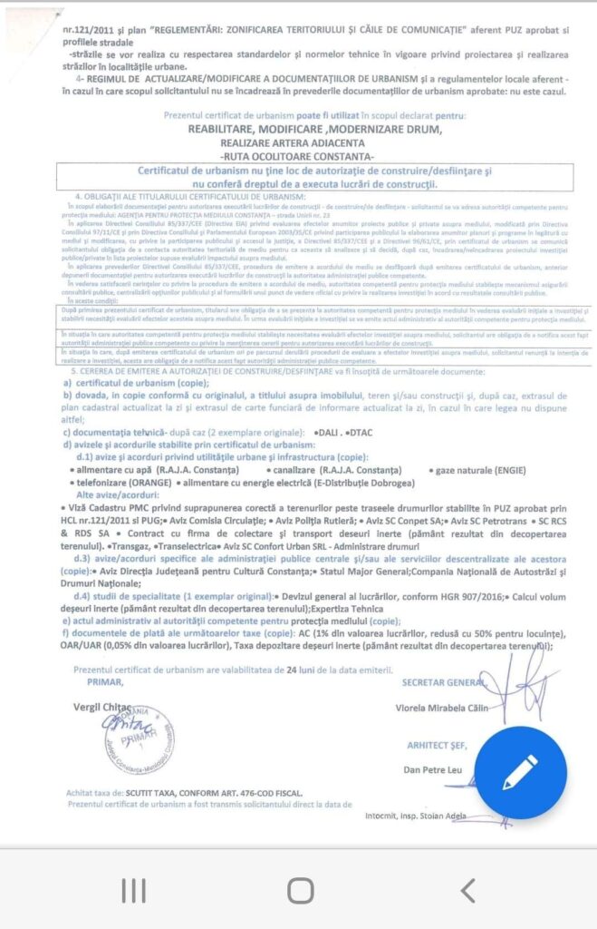 „În acest moment, a fost emis certificatul de urbanism, iar asta înseamnă că ne aflăm în etapa finală de elaborare a documentației tehnico-economice care stă la baza realizării efective a rutei ocolitoare. Acest lucru permite ca, în perioada următoare, să fie obținute toate celelalte avize necesare. Specialiștii ADD Constanța au întocmit întreaga documentație tehnico-economică a proiectului, pentru ca primăria să poată executa lucrarea”, a declarat Ana-Maria Vătămanu, președintele ADD Constanța.