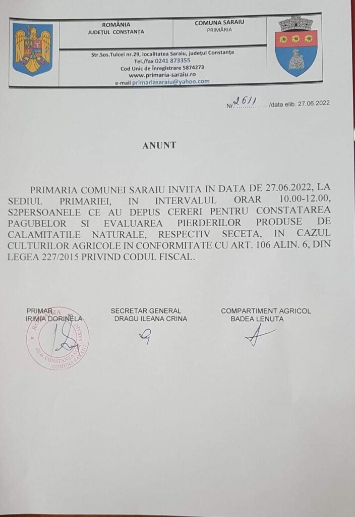 Primăria Lumina anunță că, timp de două săptămâni, între 2 și 11 august 2023, o echipă multidisciplinară formată din medici specialiști, asistenți medicali și voluntari ai Crucii Roșii vor evalua starea de sănătate a...