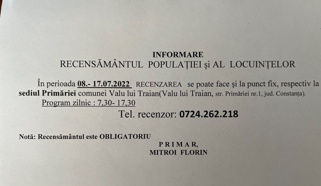 Primăria Mihai Viteazu, cu sediul in comuna Mihai Viteazu str. Principala nr. 46, judetul Constanta anunta atribuirea contractului pentru achizitia de servicii de catering organizată in cadrul obiectivului: Servicii de catering in vederea furnizarii...