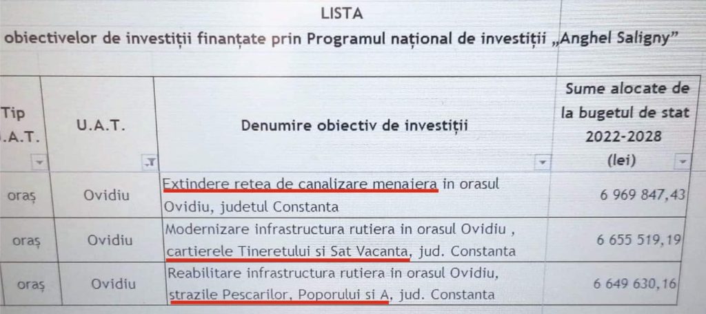 Proiecte majore de infrastructură vor primi finanțare pe Programul Național de Investiții ”Anghel Saligny” – orașul Ovidiu
