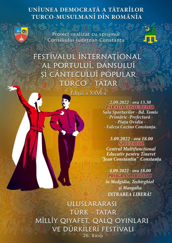 În perioada 1 – 5 septembrie 2022, Uniunea Democrata a Tatarilor Turco-Musulmani din Romania (UDTTMR) organizează cea de-a XXVI-a ediție a Festivalului Internațional al Dansului, Cântecului și Portului Popular Turco – Tătar, festival finanţat de Consiliului Judeţean Constanţa.