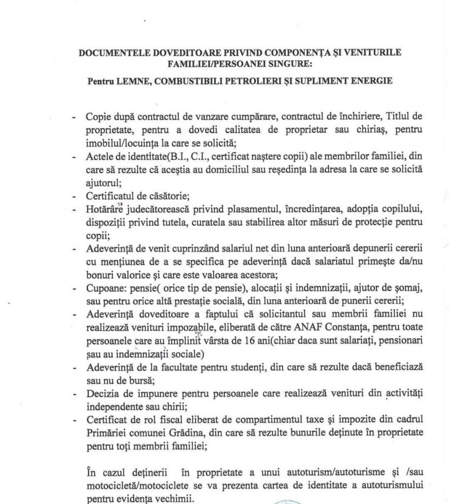 ANUNȚ AJUTOR PENTRU ÎNCĂLZIREA LOCUINȚEI, TERMEN DEPUNERE DOCUMENTE 06.10.2022-14.10.2022