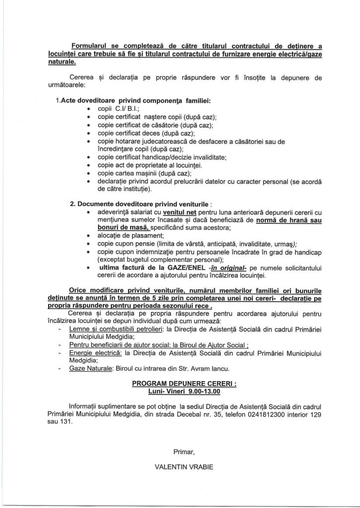 Primăria Medgidia – ANUNȚ ACORDARE AJUTOARE DE ÎNCĂLZIRE