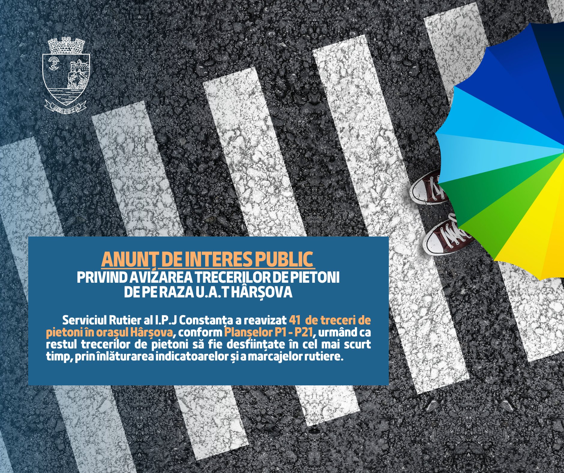 Informații de interes public privind trecerile de pietoni existente la nivelul U.A.T Hârșova