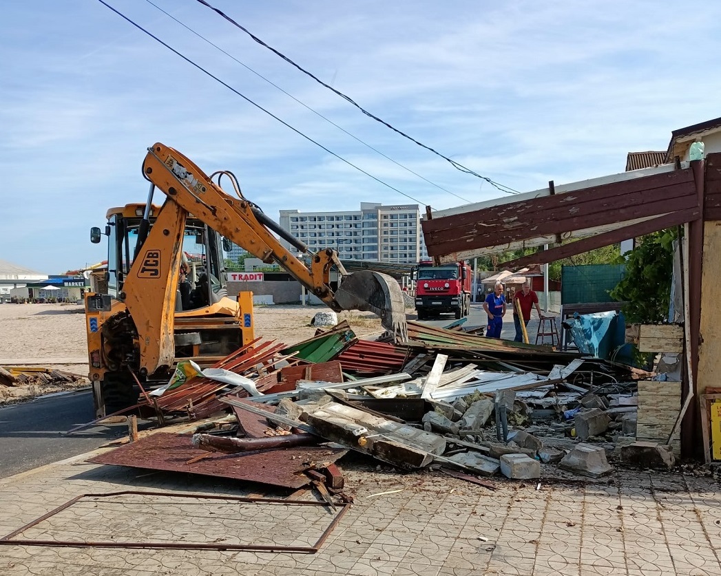 Primăria Municipiului Mangalia continuă acțiunile de demolare sau ridicare a unor construcții amplasate ilegal pe domeniul public atât în stațiuni, cât și în oraș. Mai multe astfel de construcții din stațiunea Jupiter au fost demolate, recent, întrucât proprietarii acestora au refuzat să elibereze domeniul public, după ce, în prealabil, au fost somați și li s-au dat termene pentru a-și ridica spațiile neautorizate de pe domeniul public. „Avem zeci de dosare întocmite, pe cale administrativă, cu numeroase clădiri care nu au documente legale sau autorizații de funcționare. Am început cu eliberarea stațiunilor de astfel de construcții pentru că ne dorim un turism civilizat, străzi curate, fără chioșcuri și dughene la tot pasul. Unii agenți economici, care sunt și politicieni locali, se prevalează de acest statut pentru a pune presiune pe autorități prin diverse dezinformări inserate în presă și pe rețelele de socializare. Primăria Mangalia aplică legea pentru toți cei care ocupă abuziv domeniul public și nu respectă reglementările urbanistice în vigoare”, a declarat primarul Mangaliei, Radu Cristian. Edilul a mai subliniat că investitorii din turism, dar și cei care au construcții ilegale în oraș ar trebui să înțeleagă că practicarea unui turism de calitate presupune respectarea regulilor de către toți cei care activează în domeniu. „În ultimii ani, stațiunile din sudul litoralului au atras numeroși investitori, iar administrația a investit aproximativ 100 de milioane de euro, în modernizarea stațiunilor, din finanțare nerambursabilă, pentru a avea un turism la standarde europene”, a mai precizat primarul Radu Cristian. Amplasarea chioşcurilor sau a altor spații în mod ilegal a fost vizată de autoritățile locale încă de acum câțiva ani, când mai multe construcții au fost demolate, măsură ce continuă să fie aplicată, conform legislației în vigoare.