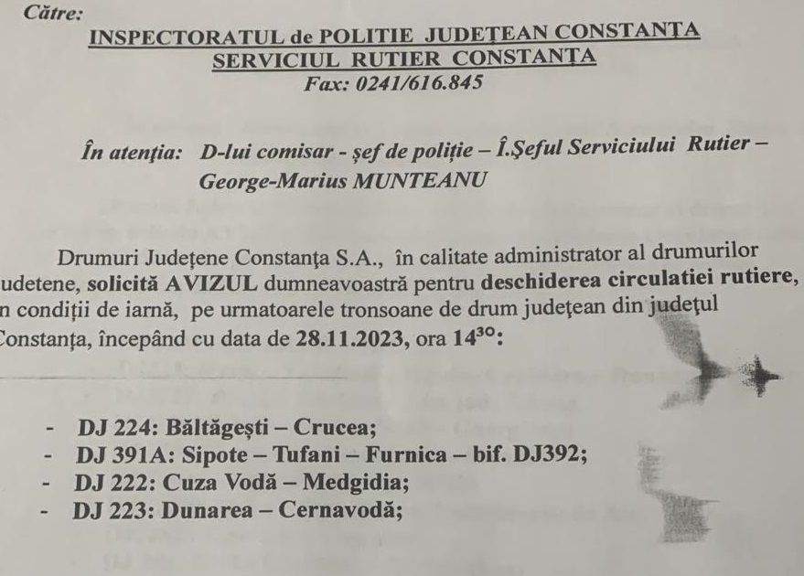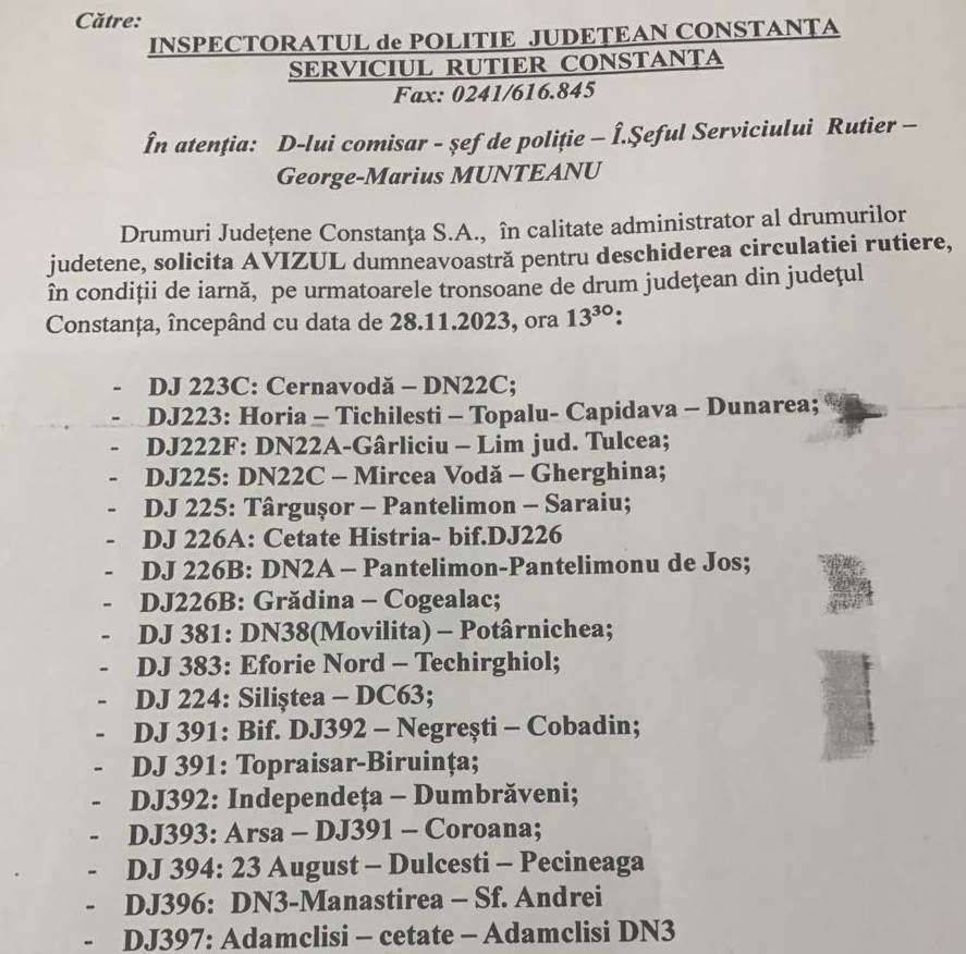 La ora 13.00 sunt închise circulației rutiere următoarele tronsoane de drumuri județene: