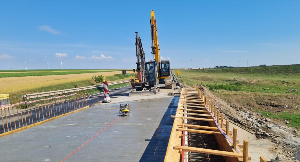 Lucrări de reabilitare a podului situat pe drumul național DN 22, km 242+328, loc. Mihai Viteazu (CT). Imagini: 17 iunie