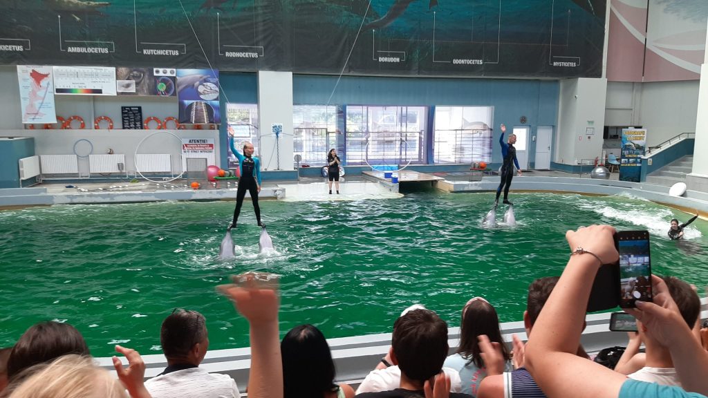 Delfinariul din Constanța a oferit marți, 5 iulie a.c., un spectacol impresionant în care au evoluat cei patru delfini din