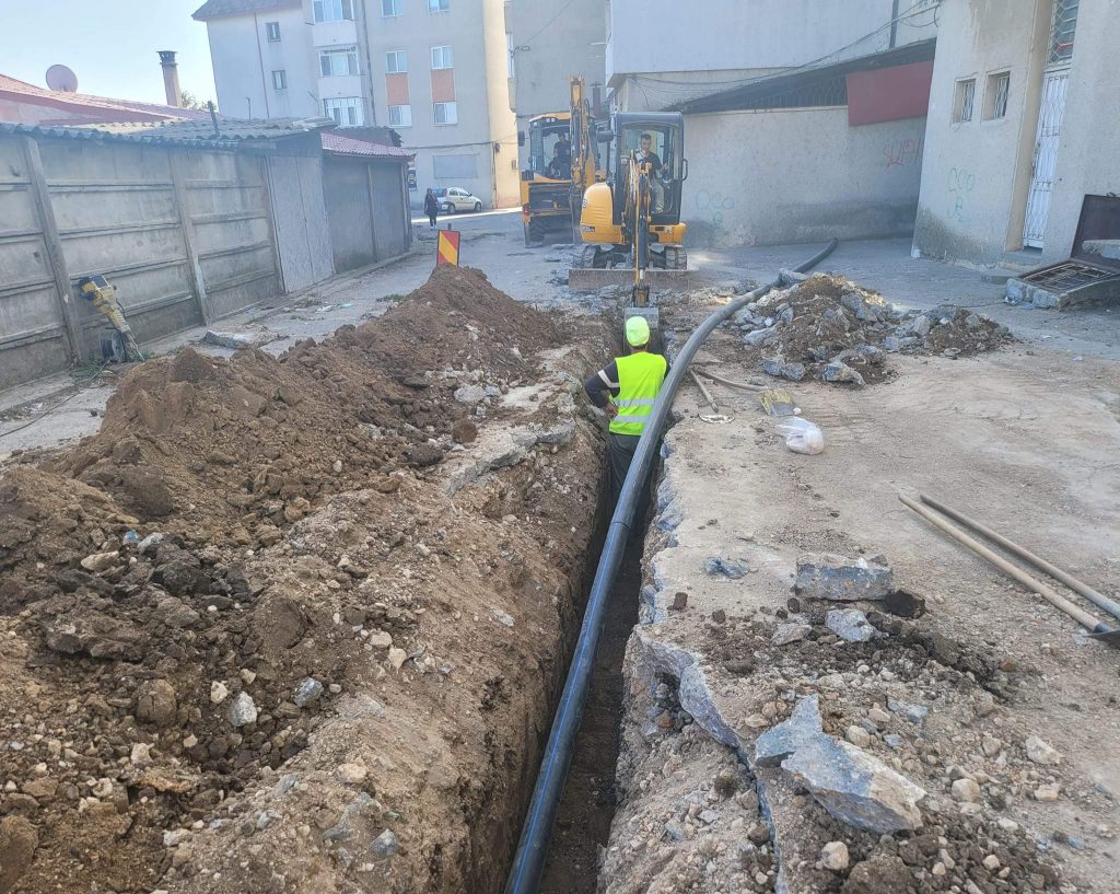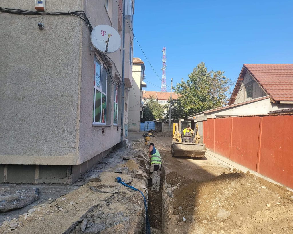 Se mai lucrează și la înlocuirea conductei de apă și a branșamentelor în parcarea de pe str. N.Titulescu.