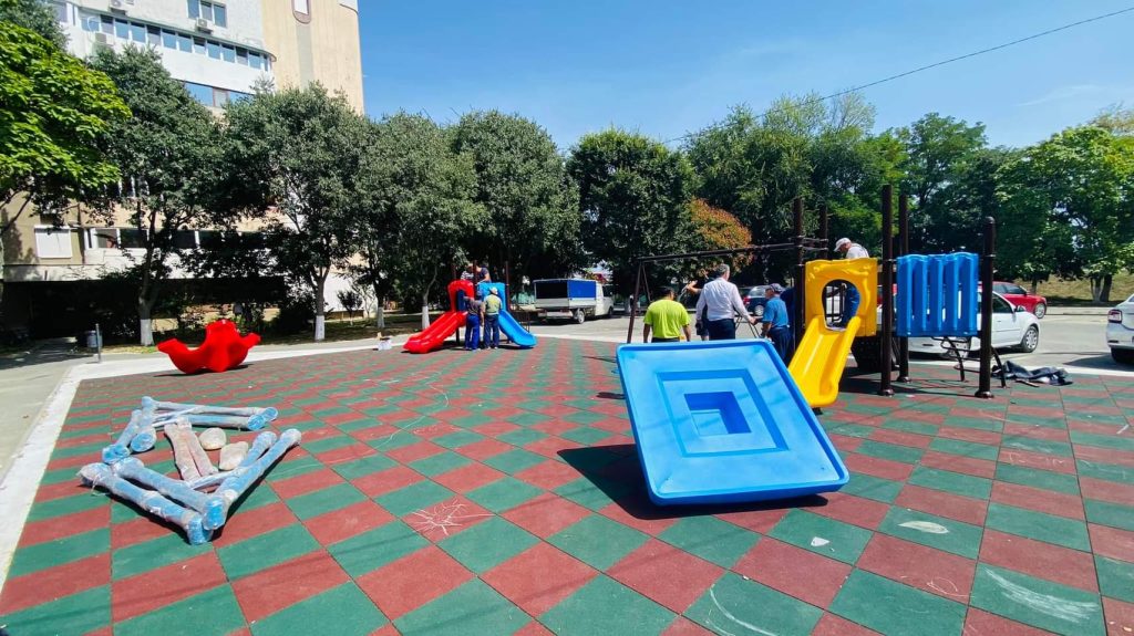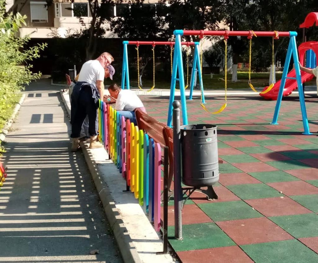 Primăria Năvodari execută astăzi lucrări în mai multe zone din oraș: montate gărduleț împrejmuire loc de joacă nou amenajat în