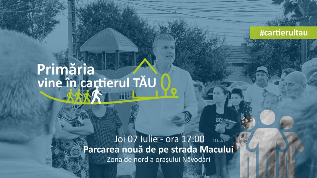 PRIMĂRIA vine în cartierul TĂU! Joi, 07 iulie, ora 17,00 Zona de Nord a Năvodariului Loc de întâlnire: Parcarea nou